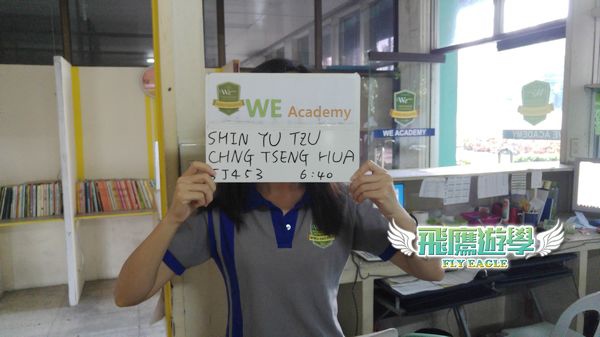 學校會拿著這樣類似的接機牌,上面有學校的名字,再加上同學的姓名